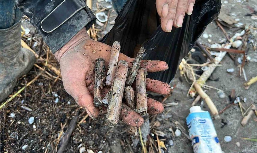 Mersin Adanalıoğlu sahiline fırtına sonrası binlerce kargı midyesi vurdu
