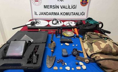 Operasyonda ele geçirilenler arasında 3 dedektör, 2 kürek, 1 kazma, 1 GPS cihazı, 1 dağcı kemeri, 1 yer altı görüntüleme cihazı, 4 eldiven ve 2 el feneri ile birlikte, tarihi eser niteliğinde olduğu değerlendirilen 1 adet gram altın, 1 yuvarlak bakır obje, 1 yüzük ve 12 çeşitli renk ve boyutlarda taş bulundu.