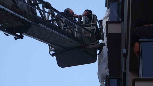 Mersin'de 6. kattan perdeyle sarkıp 3. kat balkonuna düşen kişi itfaiye tarafından indirildi