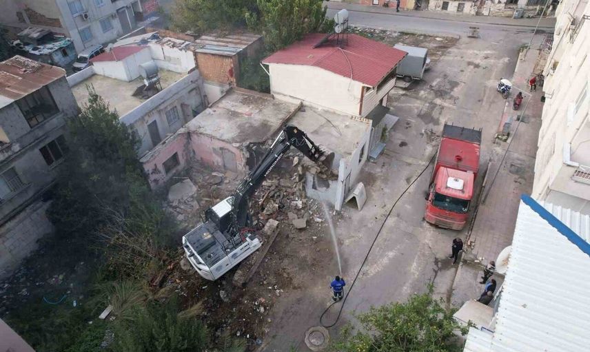 Akdeniz Belediyesi ekipleri, Mersin AFAD tarafından ağır hasarlı olduğu tespit edilen ve sahiplerince terk edilmiş tek katlı binanın kontrollü yıkımını gerçekleştirdi. Yapı, hem can hem de mal güvenliği riski oluşturduğu için önlem alınarak söküldü.