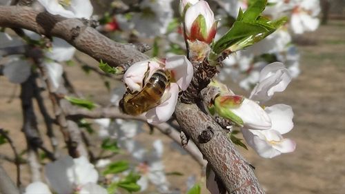 Mersin'in Erdemli ilçesinde badem ağaçları, havaların ısınmasıyla çiçek açarak beyaza büründü.