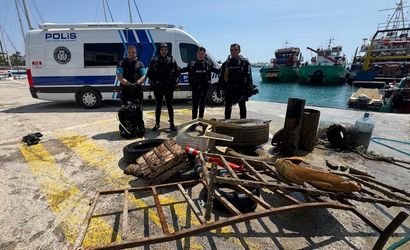 Mersin'in Silifke ilçesinde, deniz temizliği kapsamında dalgıç polisler, gerçekleştirilen etkinlikte denizden araç lastiği, bisiklet ve çeşitli atıklar çıkardı.