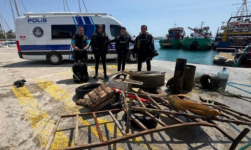 İl Emniyet Müdürlüğü tarafından yapılan açıklamaya göre, Deniz Liman Şube Müdürlüğü ekipleri, Dünya Çevre Günü etkinlikleri çerçevesinde deniz temizleme çalışmalarına destek verdi. Silifke ilçesindeki Taşucu Limanı'ndan suya dalış yapan dalgıç polisler, deniz dibinden araç lastiği, cam ve plastik şişeler, çöp kovası, sandalye, bariyer ve damacana gibi çok sayıda çevresel atığı topladı.
