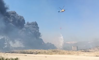 Mersin'in Silifke ilçesinde, eski kağıt fabrikası alanında çıkan yangına havadan ve karadan müdahale ediliyor.
