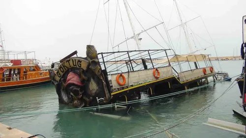 Mersin'in Silifke ilçesinde gece etkili fırtına, limanda bağlı 130 yolcu kapasiteli 'Göktuğ' gezi teknesinin su alıp batmasına yol açtı.