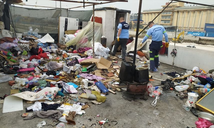 Mersin'in merkez Akdeniz ilçesinde, atık biriktirildiği belirlenen 2 katlı evden 5 kamyon çöp çıkarıldı.