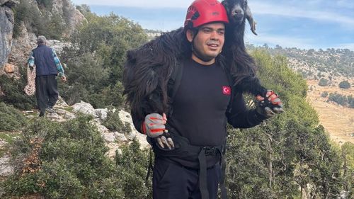Mersin'in Karahıdırlı Yaylası'nda kayalıklarda mahsur kalan iki keçi, Mersin Büyükşehir Belediyesi İtfaiye Arama Kurtarma ekiplerinin kontrollü müdahalesiyle kurtarıldı.