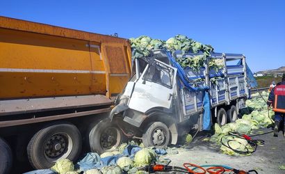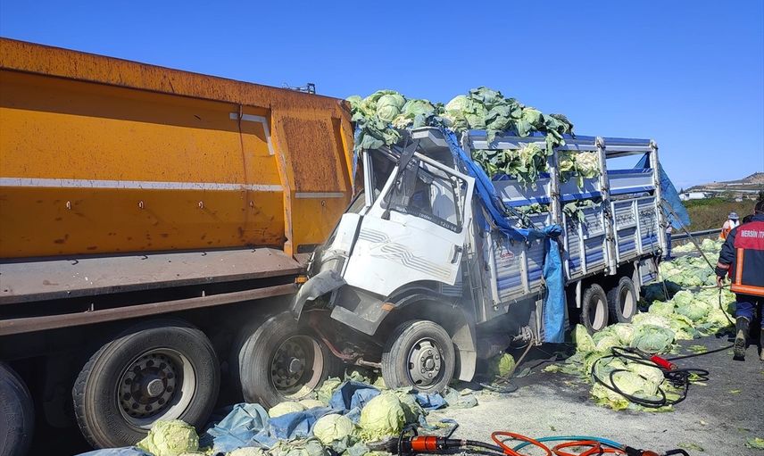 27 TU 261 plakalı lahana yüklü kamyon, H.G. yönetimindeki araç, aynı yönde ilerleyen 06 FY 1274 plakalı tırla, M.K.’nin kontrolü altında çarpıştı. Çarpışma sonrasında kamyonun kupa kısmında yangın çıktı.