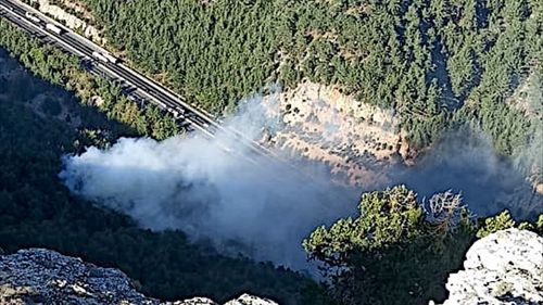 Tarsus'ta otoyolun kenarında başlayan yangın için ekipler havadan ve karadan mücadele ediyor.