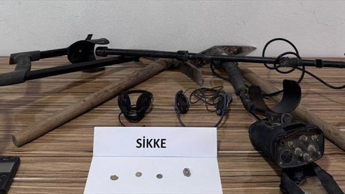 Mersin'de düzenlenen operasyonda Roma ve Bizans dönemlerine ait 4 sikke ile kaçak kazıya yönelik ekipmanlar ele geçirildi.