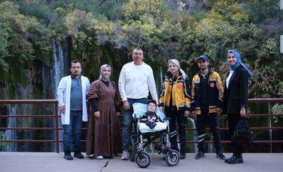 Mersin'de sağlık ekipleri, cam kemik hastası Kerim'in Yerköprü Şelalesi hayalini gerçekleştirdi