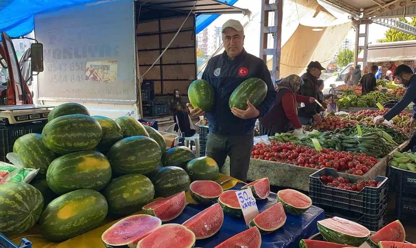 Mersin'de sezonun ilk karpuzları pazarda: Kilosu 50 TL, çeyreği 65-90 TL