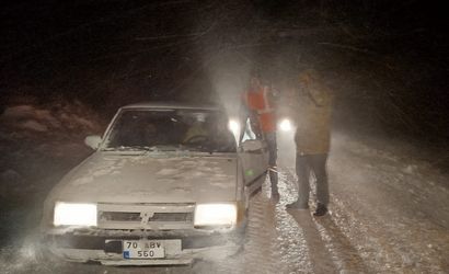 Mersin'in Mut ilçesinde, tipi nedeniyle yardım isteyen yakınları için gittikleri bölgede mahsur kalan 2 kişi ekipler tarafından kurtarıldı.