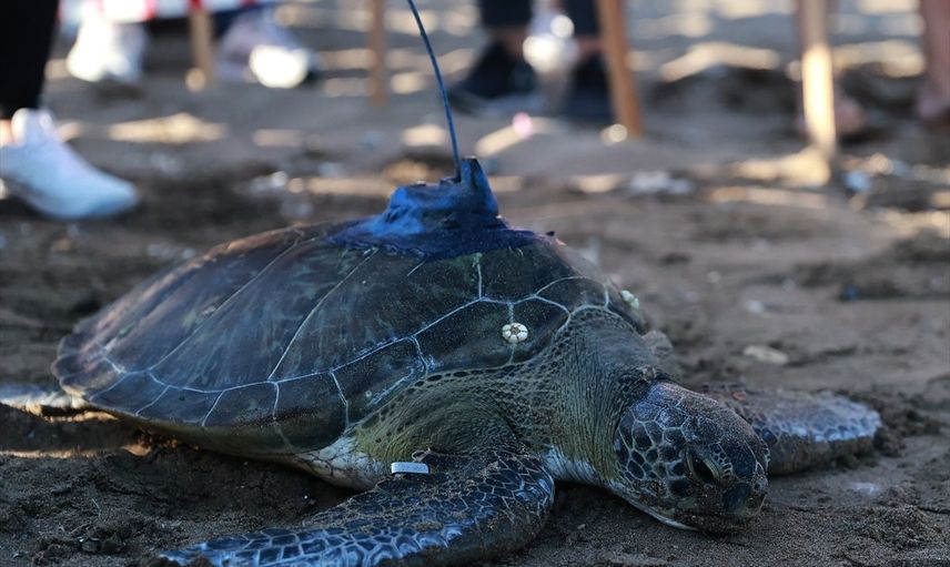 Mersin'de kaplumbağaların göç yolları, beslenme alışkanlıkları ve kışlama alanlarının öğrenilmesi amacıyla başlatılan proje kapsamında uydu takip cihazı takılan "Soli" adlı yeşil deniz kaplumbağası denize salıverildi.