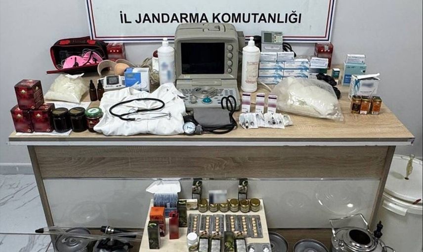 Yapılan aramada, şüphelilerin muayene yaptıkları adreste doktor önlüğü, ultrason cihazı, steteskop, tansiyon cihazları, enjektörler, akupunktur ölçüm cihazı, akupunktur iğneleri, cinsel içerikli ilaçlar ve ilaç üretiminde kullanılan malzemeler ele geçirildi.