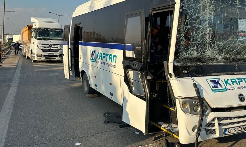 Olay, D-400 kara yolunda gerçekleşti. M.G. idaresindeki 33 NB 751 plakalı kamyon, N.T. tarafından kullanılan 33 S 0518 plakalı servis midibüsü ile 27 AUG 542 plakalı kamyonun karıştığı kazada, midibüs sürücüsü ve yolcuları yaralandı.