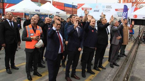 Mersin Limanı’ndan 'NZ NINGBO' ile Sudan’a çadır sevkiyatı yapıldı; AFAD ve BM IOM iş birliğiyle toplam 30 bin çadır planlanıyor.
