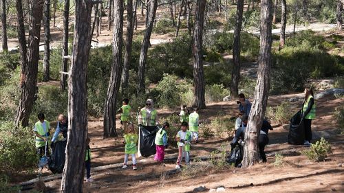 Mersin Erdemli'de 'Doğa Müfettişleri' öğrencileri ormanlık alanda çöp topladı