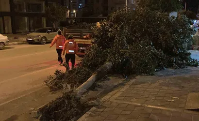 Akdeniz Mahallesi'nde bir ağaç ortadan kırılırken, Merkez Mahallesi Türbe Caddesi'nde 5-6 metrelik bir ağaç kökünden sökülerek kaldırıma devrildi.
