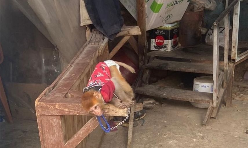 Mersin'in Tarsus ilçesindeki bir evde kaçak yollarla Türkiye'ye getirilen maymun ve 3 sincap bulundu.