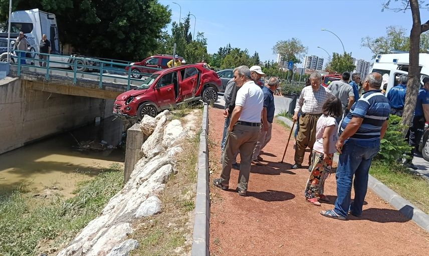 Mersin'in Tarsus ilçesinde trafik kazasında kontrolden çıkarak sulama kanalı kenarında asılı kalan otomobildeki 3 kişi yaralandı.