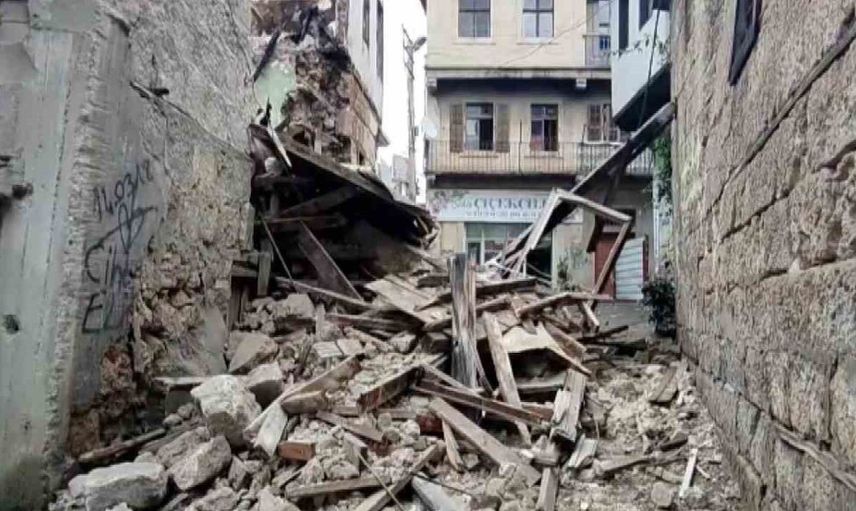 Alınan bilgiye göre, daha önce yangın nedeniyle hasar gören 3 binadan biri olan yapının bir bölümü, gece yağan yağmurun etkisiyle çöktü. Çökme anında yoldan geçen olmaması, olası bir can kaybı veya yaralanmayı önlediği yönünde değerlendirildi.