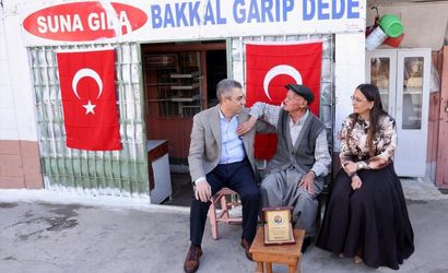 Mersin Valisi Atilla Toros, Ahilik Haftası kapsamında, eşi Dudu İrem Toros ile birlikte Erdemli ilçesi Harfilli Mahallesi'nde bulunan iş yerinde 50 yıldır bakkallık yapan Mehmet Suna'yı ziyaret etti.