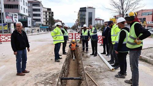 Merzifon'da içme suyu hattı çalışmalarında boru döşeme sürüyor