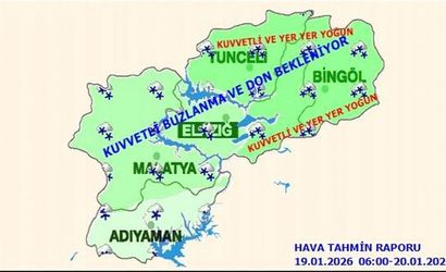 Açıklamada ayrıca Elazığ, Malatya, Tunceli, Bingöl çevreleri ile Adıyaman’ın kuzey kesimleri için, yüksek kar örtüsüne sahip eğimli alanlarda çığ tehlikesi bulunduğu bildirildi. Bu alanlarda yaşayanlar ile ilgili birimlerin dikkatli ve tedbirli olması önemine işaret edildi.