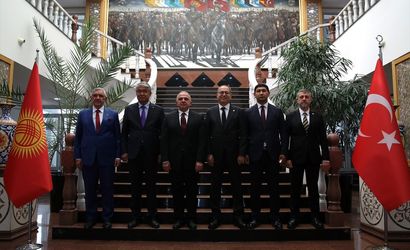 Dünyaca ünlü Kırgız yazar Cengiz Aytmatov'un ölümünün 17. yılına ithafen düzenlenen etkinliklere katılmak için Kırgızistan'da bulunan Cengiz Aytmatov Enstitüsü Başkanı ve MHP Genel Başkan Yardımcısı Prof. Dr. İlyas Topsakal (sol 2), Kırgızistan-Türkiye Manas Üniversitesi'ni (KTMÜ) ziyaret etti. Ziyarette, Üniversite Rektörü Prof. Dr. Alpaslan Ceylan (sağda), Rektör Vekili Prof. Dr. Almaz İbrayev (solda), Türkiye'nin Bişkek Büyükelçisi Mekin Mustafa Kemal Ökem (sağ 3) ve Uluslararası Türk Kültürü Teşkilatı (TÜRKSOY) Genel Sekreteri Sultan Raev (sağ 2) de yer aldı.