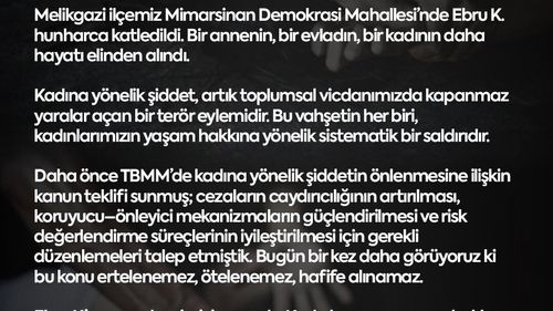 MHP Kayseri Milletvekili Baki Ersoy, Ebru K.'nın öldürülmesine tepki göstererek kadınların yaşam hakkının korunmasının devlet ve toplumun görevi olduğunu vurguladı.