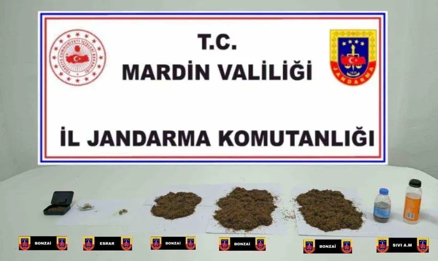 MARDİN’İN MİDYAT İLÇESİNDE JANDARMA EKİPLERİNCE DÜZENLENEN OPERASYONDA, 1 KİLO 75 GRAM SENTETİK KANNABİNOİD (BONZAİ) İLE 80 MİLİLİTRE SIVI METAMFETAMİN ELE GEÇİRİLDİ.