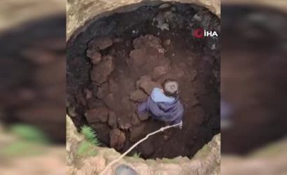 BUNUN ÜZERİNE HAREKETE GEÇEN GENÇLER, HALAT YARDIMIYLA TİLKİYİ DÜŞTÜĞÜ KUYUDAN ÇIKARDI