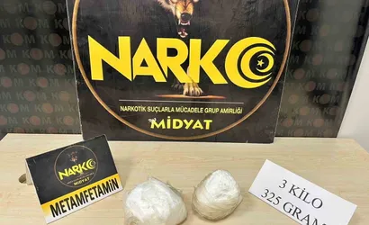 Mardin'in Midyat ilçesinde, uyuşturucu madde ticaretine yönelik yürütülen çalışmalar kapsamında düzenlenen operasyonda 3 kilo 325 gram metamfetamin ele geçirildi.