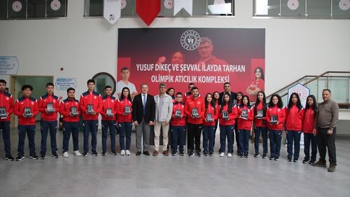 Milli Atıcı Yusuf Dikeç, Genç Sporculara Sponsorlardan Hediyeler Takdim Etti