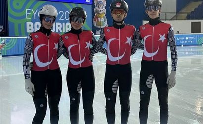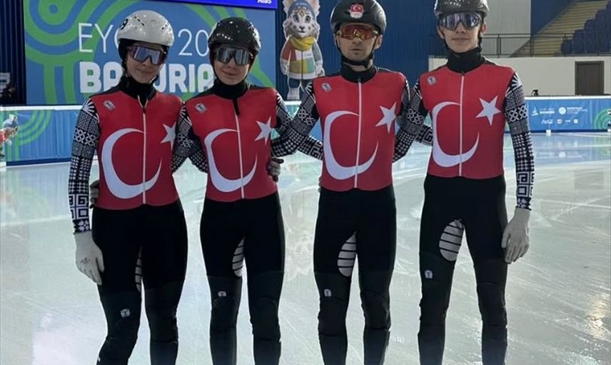 Gürcistan'ın Bakuriani kentinde düzenlenen 2025 Avrupa Gençlik Olimpik Kış Festivali'ndeki (EYOF) kısa kulvar sürat pateni karışık takım 2000 metre bayrak yarışında 3'üncü olan milli sporcular, Türkiye'ye organizasyondaki ilk takım madalyasını kazandırdı. Derya Karadağ (sol 2), Nisa Nur Fidan (solda), Berat Efe Dal (sağ 2) ve Yusuf Miraç Uludağ'dan (sağda) oluşan takım, madalya elde etti.