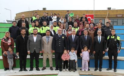 İLÇEDE GÖREV YAPAN POLİSLER VE EŞLERİYLE BİR ARAYA GELEN YILMAZ, PROGRAMIN ARDINDAN KAMP ALANINI GEZEREK YETKİLİLERDEN BİLGİ ALDI.