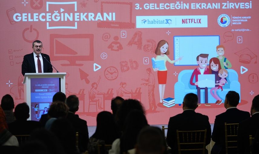 Milli Eğitim Bakanı Yusuf Tekin, Netflix, Habitat Derneği ve TOBB Kreatif Endüstriler Meclisi işbirliğiyle, TOBB İkiz Kuleleri Konferans Salonu'nda bu yıl üçüncüsü gerçekleştirilen "Geleceğin Ekranı Zirvesi"ne katılarak konuşma yaptı.