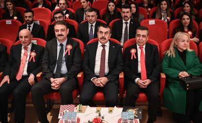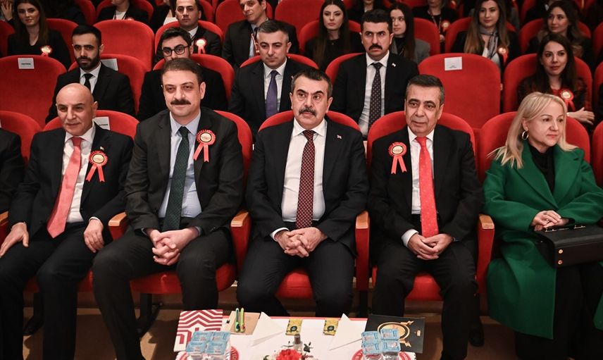 Milli Eğitim Bakanı Yusuf Tekin (ortada), Milli Eğitim Vakfı'nın (MEV) 44. kuruluş yıl dönümü dolayısıyla MEV Ankara Koleji'nde düzenlenen programa katıldı.