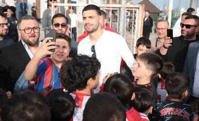 Milli Futbolcu Merih Demiral, Bolu'da ziyaretlerde bulundu. Kendisini bekleyen çocuklarla fotoğraf çektirdi ve formalarını imzaladı.