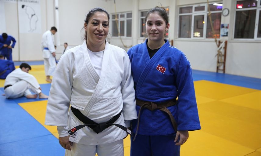 Milli judocu Minel Tepe (17) Türk judo tarihinde önemli başarılar elde eden annesi ve antrenörü İlknur Kobaş Tepe'nin (solda) izinden giderek zirveye çıkmayı hedefliyor.