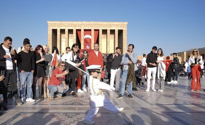 Anıtkabir'de, 3 yaşındaki Barskan Özenç, giydiği askeri kıyafetle askerlerin nöbet değişimini taklit ederek dikkatleri üzerine çekti. Geçen yıl askerlerin nöbet değişiminden etkilenen minik Barskan, bu yeteneğini 29 Ekim Cumhuriyet Bayramı etkinlikleri sırasında sergiledi.