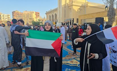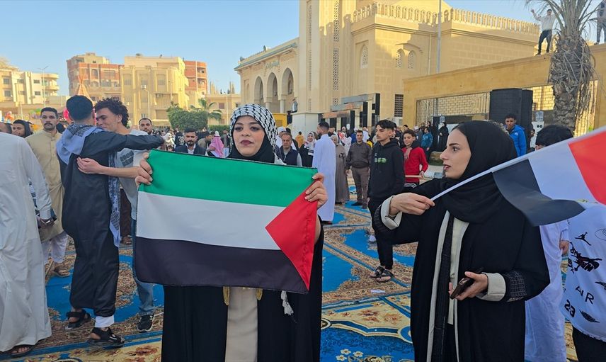 Ramazan Bayramı'nı bugün kutlamaya başlayan Mısır'da bayram namazında okunan hutbede İsrail saldırılarının hedefi olan Filistinliler için dua edildi ve çok sayıda cami ve meydanda Gazze'den Filistinlilerin göçe zorlanmasını reddetmek için binlerce kişi gösteri düzenledi. Mısırlılar, Ariş kentindeki Nasr Camii'nde bayram namazı sonrası Mısır ve Filistin bayraklarını taşıyarak gösteri düzenledi.