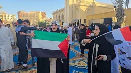 Mısır'da Ramazan Bayramı'nda İsrail saldırıları altında yaşayan Filistinliler için dualar edildi ve gösteriler yapıldı.