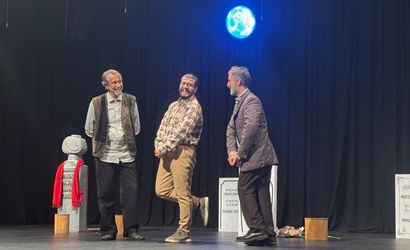 Nüktedan Kültür Sanat tarafından sahnelenen tek perdelik "Evlen Zaman İçinde" oyunu Esenler Dr. Kadir Topbaş Kültür ve Sanat Merkezi'nde izleyicisiyle buluştu. Oyuncular Fatih Mehmet Koç (solda) ve AA muhabirine açıklamalarda bulundu.