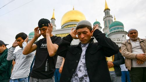 Moskova'da binlerce Müslüman, Kurban Bayramı namazını camilerdeki alan yetersizliği nedeniyle sokaklarda kıldı.