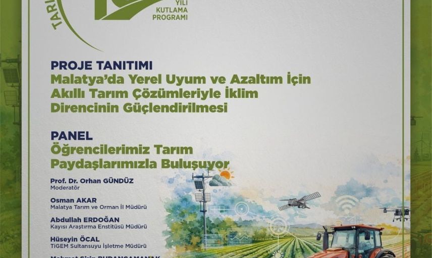 MTÜ Ziraat Fakültesi tarafından hazırlanan "Tarımsal Eğitim ve Öğretiminin 180. Yılı Kutlama Programı" kapsamında öğrenciler, Malatya’daki tarım paydaşlarıyla bir araya gelecek. Programın merkezinde, Malatya’da Yerel Uyum ve Azaltım İçin Akıllı Tarım Çözümleriyle İklim Direncinin Güçlendirilmesi projesinin tanıtımı yer alıyor.