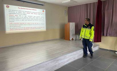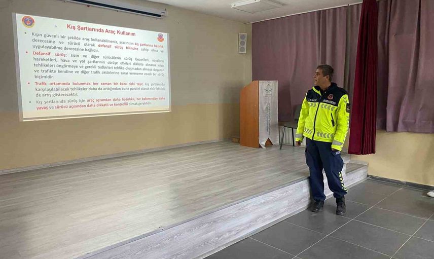 Mudurnu İlçe Jandarma Komutanlığında görevli Trafik Tim Komutanı Uzman J. VIII. Kad. Çvş. Levent Özyünsel, sürücülere kış tedbirleri, trafik güvenliği ve güvenli sürüş teknikleri üzerine kapsamlı bir sunum yaptı. Özyünsel sunumunda özellikle kış lastiği kullanımının önemi, mevsim şartlarına uygun araç bakımı ve buzlanma ile azalan görüş mesafesi durumlarında dikkat edilmesi gereken sürüş teknikleri üzerinde durdu.