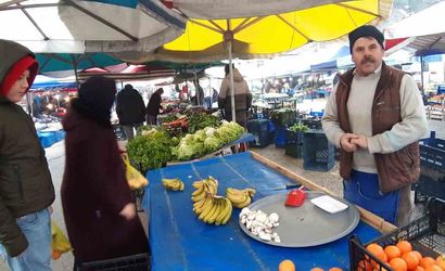 Mudurnu'da pazarcıdan 'Takdir getirene vitamin bedava' kampanyası