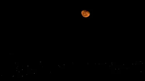Muğla ve ilçelerinde 2026'da gerçekleşen Tam Ay Tutulması (Kanlı Ay), kentin silueti ve sokak ışıklarıyla birleşen kızıl tonlarla izlendi.